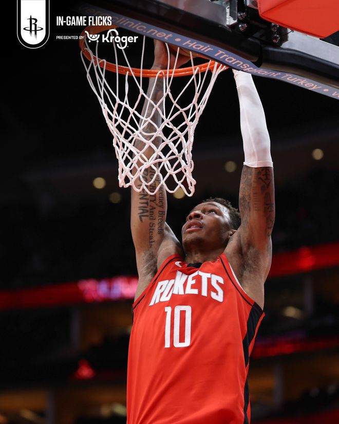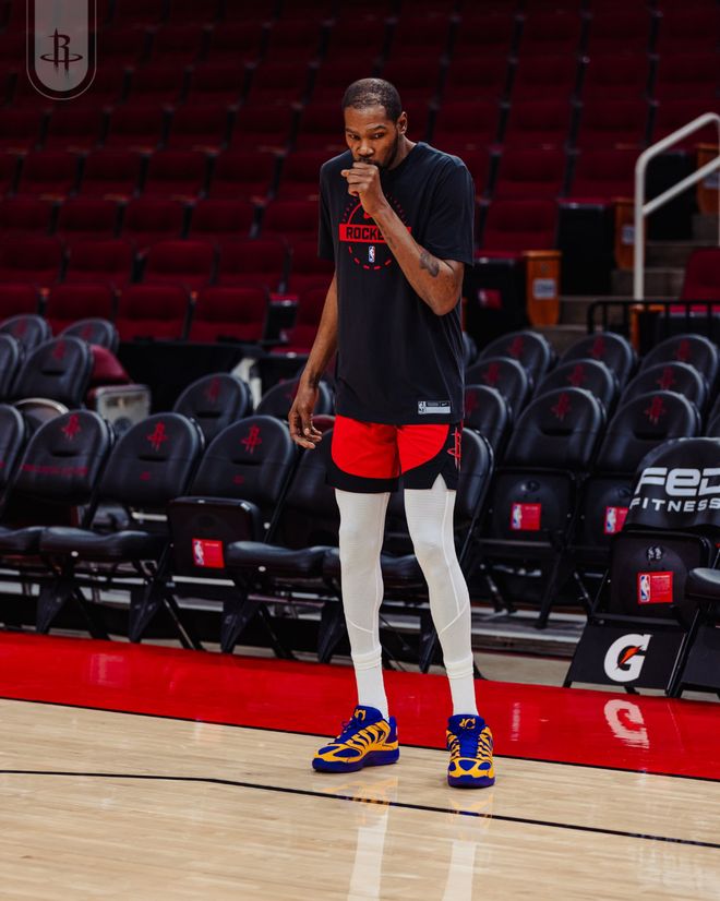 火箭队首发阵容:汤普森、伊森、杜兰特、史密斯、申京