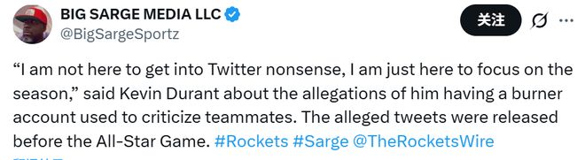 此前,美媒晒出了疑似杜兰特小号的一些言论,当然,目前没有实质证据可以证明这些账号的内容就是杜兰特发的—