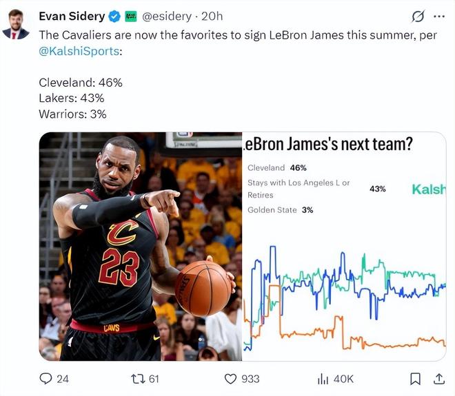 但两小时后根据,美记alex sherman的报道,湖人队CEO珍妮-巴斯觉得勒布朗‘不太可能’会在下赛季重返湖人队。虽然不能说詹姆斯绝对不会重返LAL,但珍妮-巴斯透露詹姆斯从来没有任何暗示将要重返湖人,詹姆斯对自己的职业生涯有绝对的控制权。
