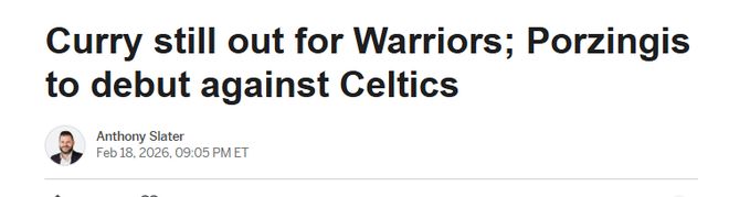 北京时间2月19日,金州勇士将在明日对阵波士顿凯尔特人,球星斯蒂芬-库里将缺阵,具体回归时间仍不明确。