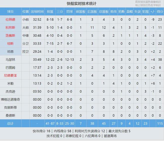 快船能够获胜,马瑟林居功至伟。此役他替补出战34分钟,投篮22中12,三分6中2,罚球13中12,爆砍38分5篮板4助攻3抢断,得分追平个人生涯纪录。快船队史上仅有两名球员替补出战时比马瑟林得分更高:路威和鲍伯-麦卡杜。