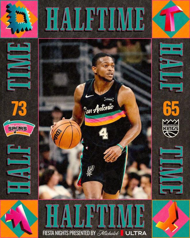 次节比赛,双方连续两节均是单节得分30+对攻,且马刺是连续两节单节得分35+。国王率先一波9-2攻势反超,马刺之后40-44落后,马刺一波8-0攻势夺回领先,国王内外开花再度反超比分。马刺在56-59落后情况下,马刺一波11-0攻势反超比分,马刺之后继续压制国王,马刺单节38-34再赢4分,上半场结束马刺73-65领先国王。前两节比赛,国王三分15中5,德罗赞14分与穆雷14分,引领4人得分上双;马刺三分16中7,文班亚马10中5得到11+8+4+3帽与卡斯尔13+6+3。