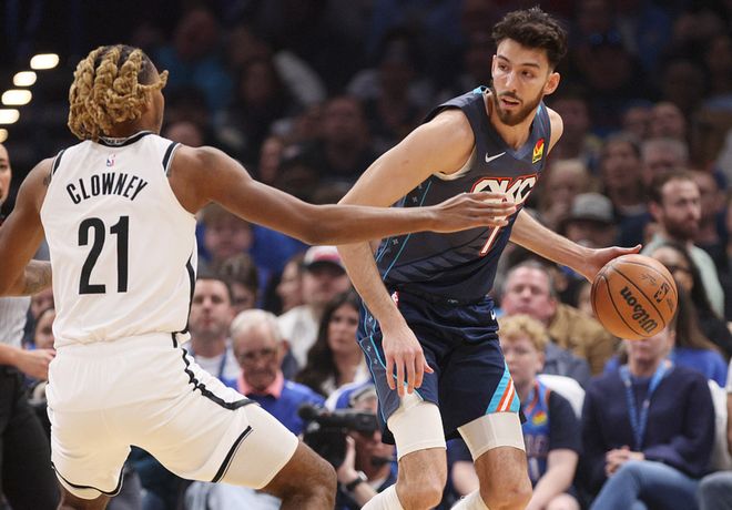 雷霆主场迎战篮网,雷霆少了亚历山大、杰伦、米切尔,篮网少了克拉克斯顿、扎威,首节比赛篮网稍占上风,取得2分领先,第二节雷霆单节赢了19分,半场战罢雷霆领先17分,第三节篮网追回7分,第四节雷霆再次占据上风,最终雷霆105-86大胜篮网。麦凯恩12中7(三分6中3)得到21分4板,切特6中3得到15分7板2助,篮网方面波特16中6得到22分9板5助2断,特拉奥雷11中5得到17分3助2断。