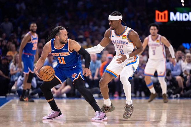 次节比赛,双方连续两节单节得分不足30分,雷霆率先连得5分,雷霆之后继续扩大35-26领先优势。尼克斯连追5分,雷霆再得3分,布伦森引领一波8-2攻势追分,雷霆重新多点开花拉开49-42领先优势。尼克斯回敬一波10-4攻势追分,雷霆单节27-29被追回2分,上半场结束雷霆53-52领先尼克斯。前两节比赛,尼克斯三分24中11,布伦森9中6命中3记三分得到16+5+4与布里奇斯10分;雷霆三分12中3,亚历山大8中3得到12分与多尔特12、杰伦13分。
