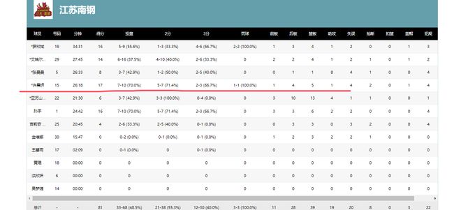 全场数据方面,江苏队与四川队的助攻比为19-17、抢断比为8-12、篮板比为43-33、投篮命中率为49%-42%、失误比为22-14。由此可见,江苏队本场输在关键球处理和战术执行力上。