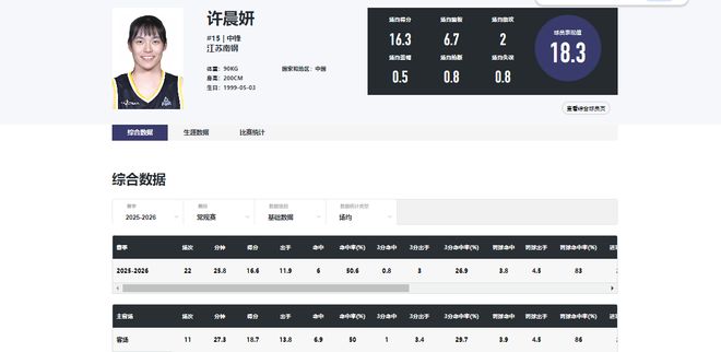 不单单是本场,本赛季常规赛以及进入季后赛后,许晨妍都有非常出色的表现。