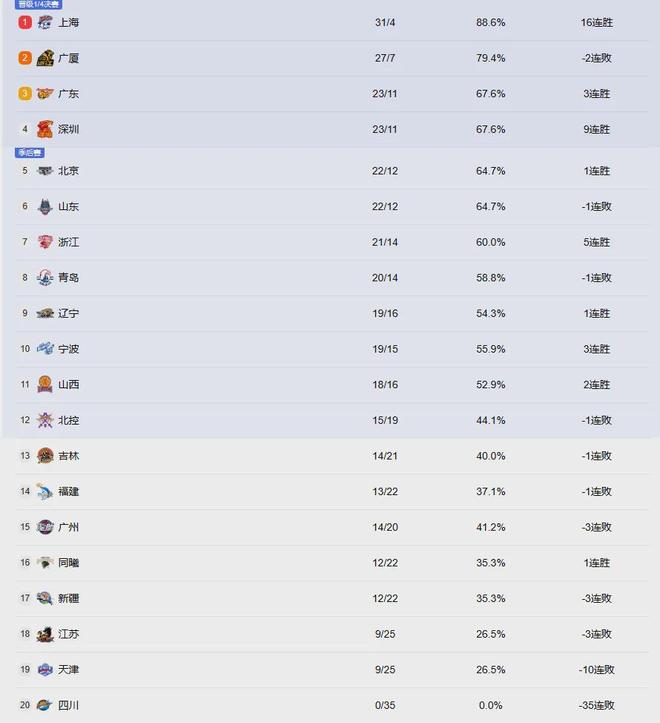 随着本轮比赛结束,上海队目前31胜4负排名第一,并且已经拉开跟第二名广厦的胜场差距,按照上海队的态势,以及后续赛程,本赛季的常规赛冠军基本锁定,这赛季的上海男篮确实强势,其他球队只能望尘莫及。