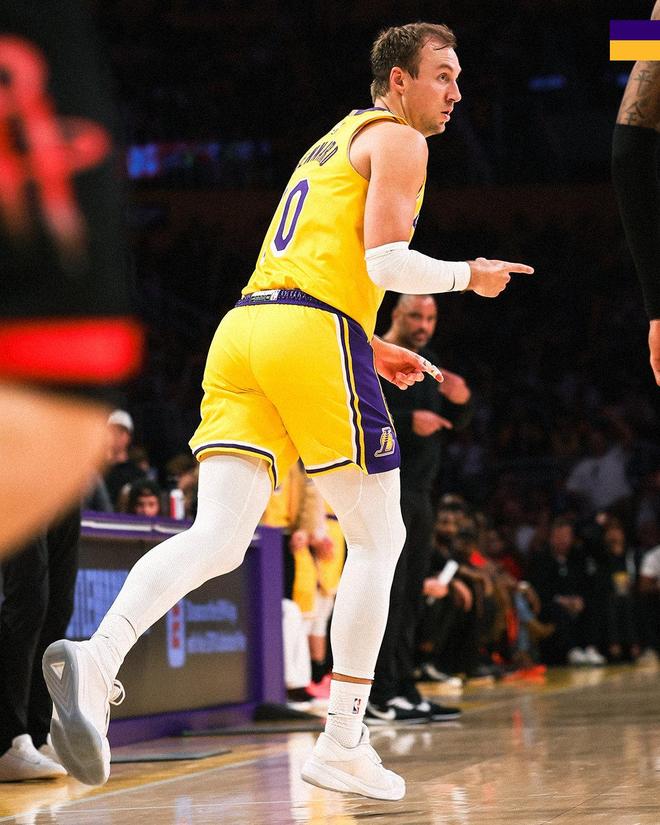 肯纳德首节砍下了11分,下半场他轰下了16分。第3节,肯纳德贡献了7分。末节,肯纳德轰进3记远投,助力湖人一度将分差扩大至13分,就此锁定大局。肯纳德分担了詹姆斯的进攻重任,弥补了东契奇、里夫斯的空缺。