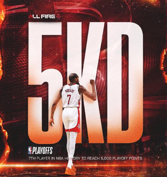 其一,杜兰特达成季后赛生涯5000分里程碑。