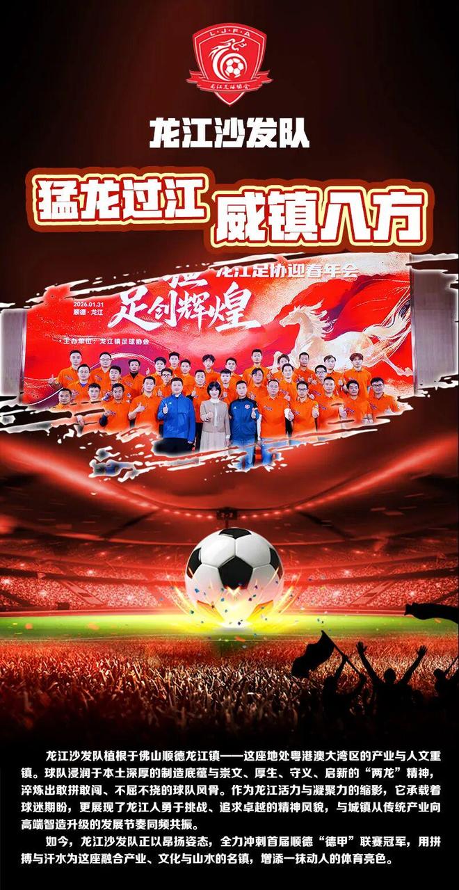 2025年12月至2026年上半年,顺德举办2025-2026赛季第一届顺德“德甲”足球联赛。赛事以足球为纽带,搭建全民参与的公共交流平台,丰富市民文体生活,凝聚城市向心力;以赛事为核心,通过“足球+”推动体育、文化、产业、旅游深度融合,激活文体资源,带动区域消费;以体育为桥梁,串联世界美食之都、世界级制造业等城市名片,讲述顺德故事,以高热度提升赛事影响力,传播城市品牌,塑造镇街独特气质。以此打造本土足球联赛IP,培育健康足球文化,塑造城市体育品格,推动顺德足球事业行稳致远。