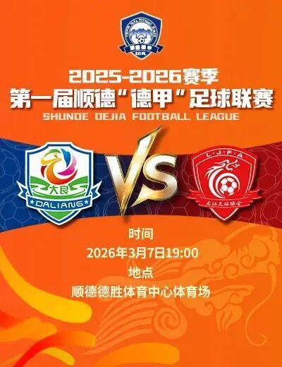 揭幕战将于2026年3月7日19:00-21:30举行,比赛地点为顺德德胜体育中心体育场,票价9.9元/张,非常惠民。揭幕战为大良双皮奶力酒队VS龙江沙发队,期待双方给大家献上一场精彩的比赛。