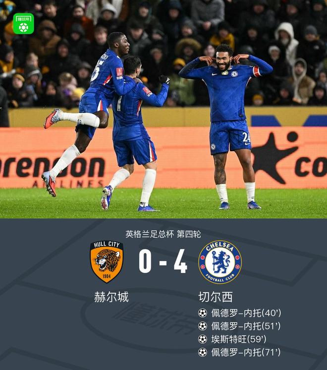 北京时间2月14日英格兰足总杯 第四轮,赫尔城对阵切尔西。切尔西佩德罗-内托帽子戏法,埃斯特旺破门。最终比分赫尔城 0-4 切尔西。