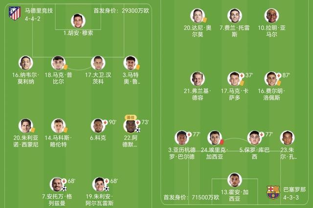 反观巴萨,开场后球队防线就连续出现低级失误,中场失控无法组织有效进攻,锋线哑火难以威胁马竞球门,被对手完全压制。
