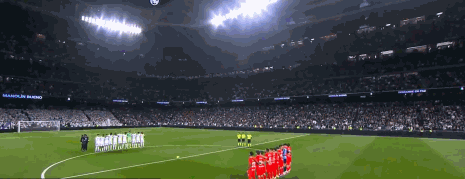 赛前仪式,两队球员为刚去世的皇马名宿布埃诺默哀