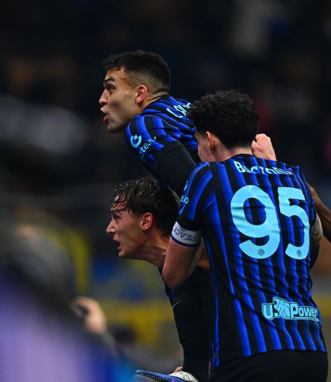 面对最近2次正面交锋,全部击败自己的死敌,国际米兰在主场也是毫无保留,祭出了352的体系,首发门将索默,巴斯托尼、阿坎吉和比塞克组成三后卫,迪马尔科、苏契奇、泽林斯基、巴雷拉和恩里克在中场一字排开,双箭头则是小图拉姆搭档劳塔罗马丁内斯。