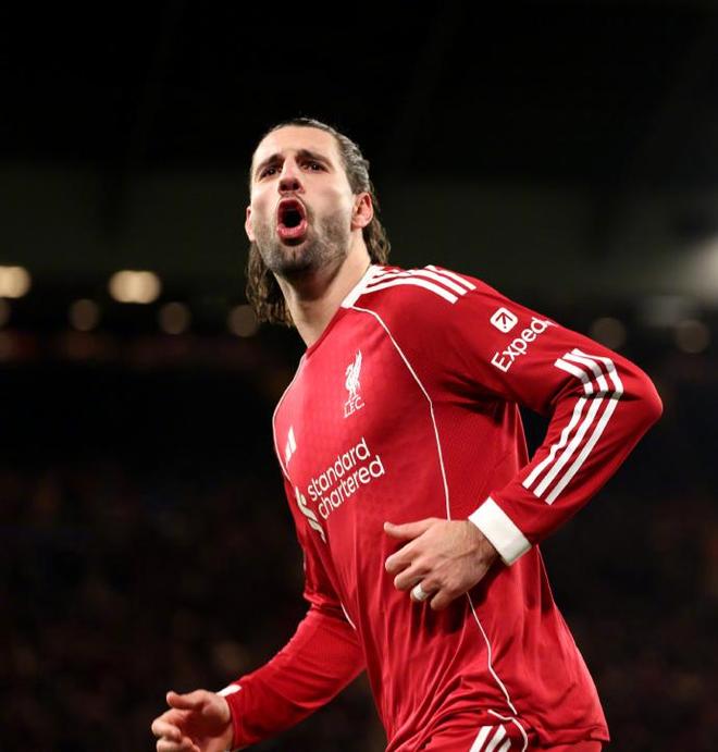 易边再战,利物浦的进攻火力完全释放。第 56 分钟,萨拉赫右路轻巧挑传禁区,索博斯洛伊拍马赶到迎球抽射,皮球直挂网窝。连续两场比赛破门,匈牙利中场早已不是轮换选择,而是主帅最稳定、最致命的进攻发起点之一。远射、传球、推进、防守覆盖,索博用全能表现,撑起了利物浦的中场脊梁。