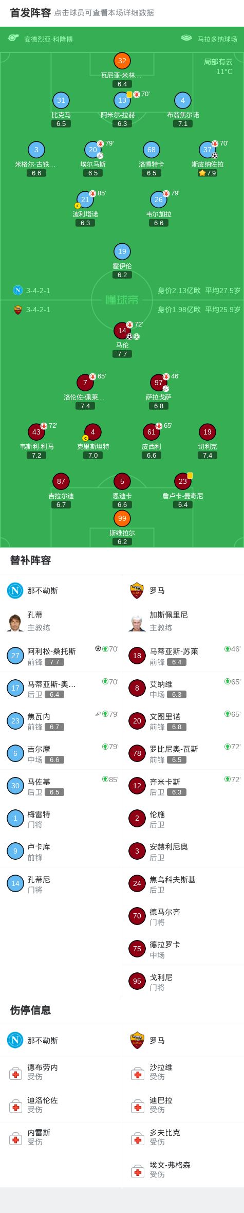 第7分钟,萨拉戈萨助攻,马伦破门,罗马1-0