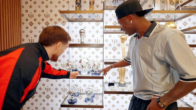 我现在在马德里,就在维尼修斯家门口。今天我们要带大家看看他家里的一些细节,更重要的是,看看足球之外的维尼修斯。我们会陪他去参加一个活动,因为他要发布自己的新球鞋。一路上我们也会在车里聊天。不过在出发前,先参观一下他的家,因为这里有很多他拿到的个人奖杯、皇家马德里的荣誉,我觉得会让你们很惊讶。我们现在真的就在他家门口,敲敲门看看他会不会开门。晚上好。你怎么样?