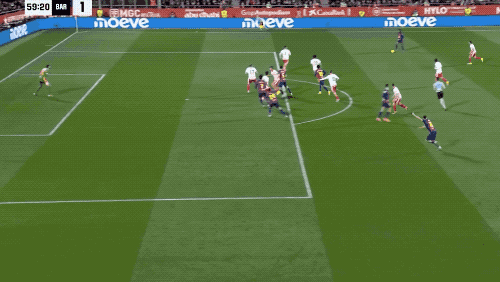 第16分钟,接到奥尔莫的传球,亚马尔停球相当舒服,快速突破形成单刀,但最后的射门却被门将扑了出来。