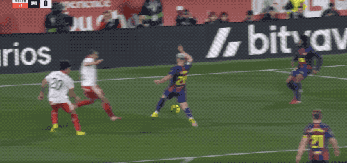 之后的25分钟,巴萨占据了场面上的绝对主动。第43分钟,拉菲尼亚的射门打穿防守球员的小门,可惜皮球击中立柱。