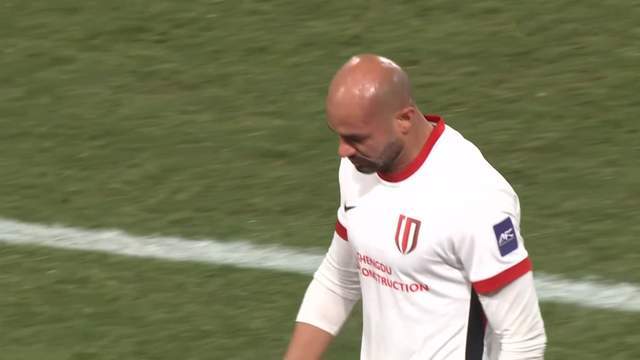 丢球之后,成都蓉城球员还没有缓过神,韦世豪也送出一次传球失误,被对手打反击,杨明洋不得不用战术犯规阻拦对手,吃到了一张黄牌。中后场没有外援,成都蓉城的战术体系不成型,拿不住球。比赛第25分钟,对手又轻松的打穿成都蓉城的中场,白崎凌兵迎球轰出一记世界波,这球打的无解,同时成都两名后腰,没有给他施加压力,让他轻松的起脚。