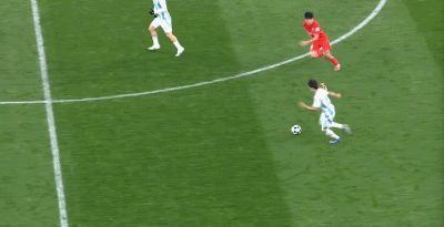 第50分钟,姜祥佑长距离带球,随后射门被颜骏凌扑出