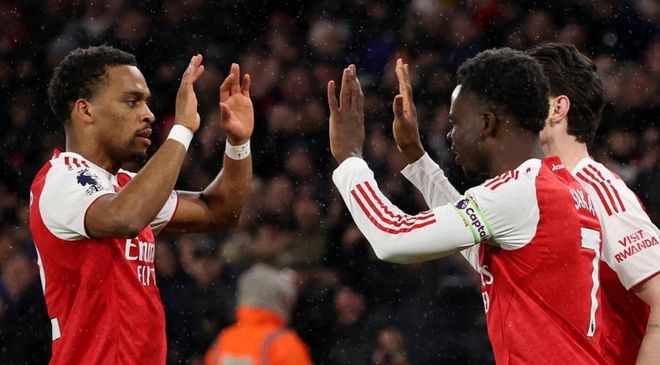比赛刚刚开始5分钟,阿森纳就取得了进球!赖斯在左侧起球传中,萨卡前插,门前包抄头球攻门,球进了!阿森纳取得梦幻般的开局。3分钟后,阿森纳再次获得机会。赖斯在禁区弧顶处起脚低射,皮球稍稍偏出右侧立柱。第17分钟,马杜埃凯在禁区右侧起脚兜射,被扑了出去。马丁内利近距离补射,还是被门将给化解了。