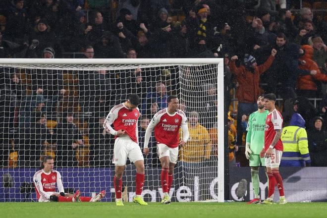 2球落后,狼队并没有放弃。第61分钟,布埃诺右路无人防守情况下打出一脚精彩兜射,皮球直挂远角,狼队扳回1球。而在伤停补时第4分钟,替补出场的汤姆埃多齐一脚抽射,皮球击中同样替补出场的卡拉菲奥里弹进网窝,狼队在最后时刻完成绝平,而枪手则3分变1分。