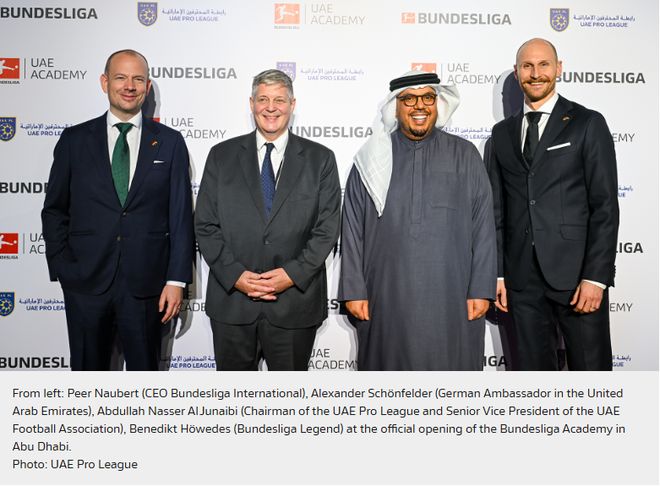 其四,长期主义的投入,拒绝速成化的短视行为。德甲明确将阿联酋定为中东北非地区的核心战略市场,通过区域办公室实现“常态化布局”,而非短期的“集训式培养”;依托“德甲梦想”计划为阿联酋苗子提供赴德交流的长期通道,让球员的成长能够接触到更顶级的足球环境。佩尔·诺伯特强调,德甲的目标是推动当地“各层级足球发展”,这种从基层到职业的全链条投入,才是青训的本质。