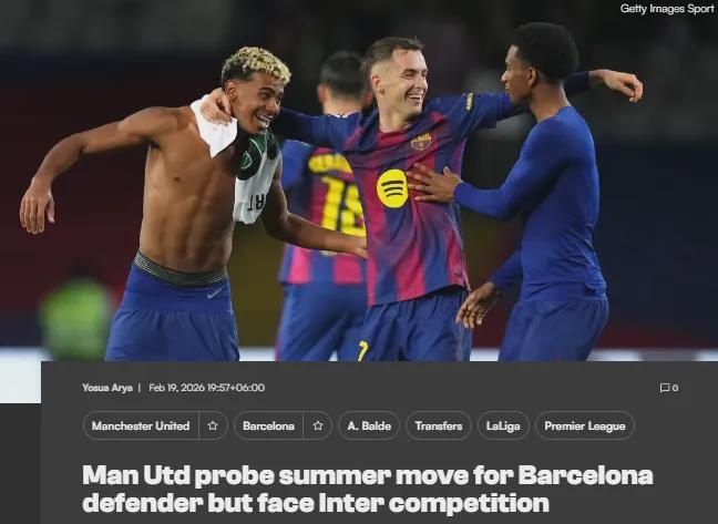 报道称,曼联准备为巴尔德提交4000万欧元的报价,但这个费用远低于巴萨的心理价位,西班牙人的合同2028年才到期,且违约金高达10亿欧元,因此红蓝军团在谈判中占据优势。