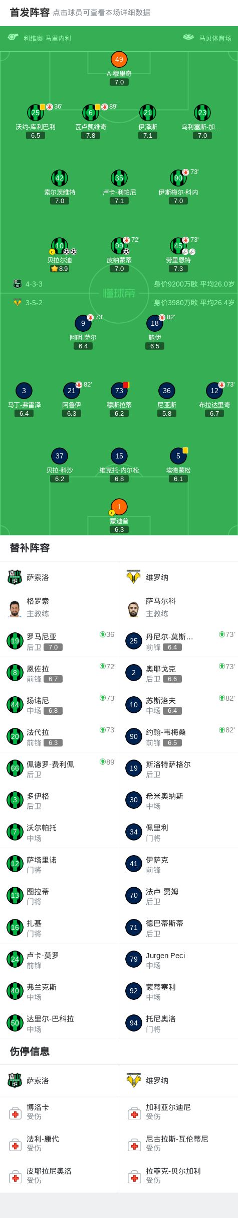 第40分钟,萨索洛球员劳里恩特助攻皮纳蒙蒂打入一球。