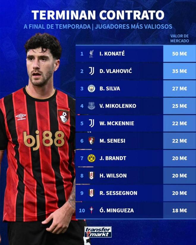 此外身价在2000万欧元以上的还包括富勒姆的塞塞尼翁、哈里·威尔逊,多特蒙德的布兰特,伯恩茅斯的赛内西,尤文的麦肯尼,埃弗顿的米科连科等等。相比之下他们的个人实力肯定是要大过名气的,如果能够被免签,也的确是生涯新机会。此外,塞尔塔的明格萨身价也达到了1800万欧元,在这份榜单里排前10。