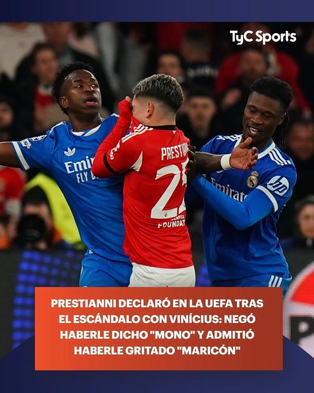 TyC在报道中称,普雷斯蒂安尼向欧足联表示,在维尼修斯进球后,他没有冲对方喊“猴子”,不存在种族歧视行为。但他承认,自己曾对着维尼修斯喊“基佬”。TyC还表示,普雷斯蒂安尼预计可以参加与皇马的次回合比赛。