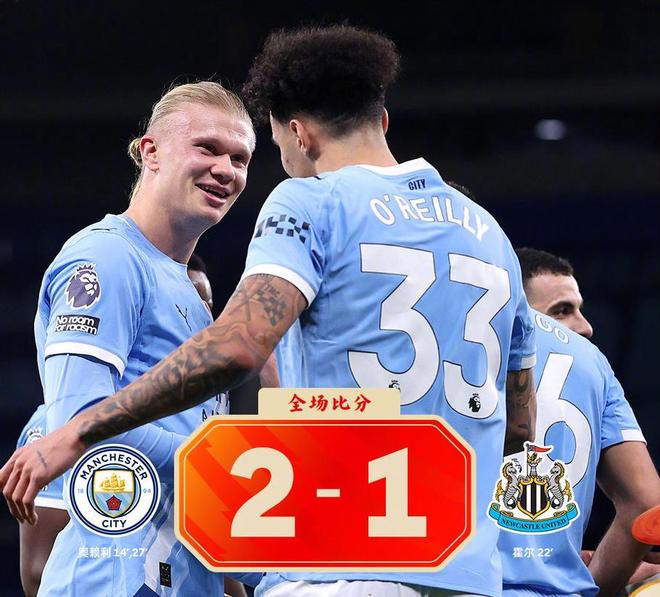 北京时间2月22日凌晨,英超联赛第27轮一场焦点战在阿提哈德球场打响,曼城坐镇主场迎战老对手纽卡斯尔联。此役哈兰德送助攻,年仅20岁的奥赖利梅开二度,霍尔折射破门难救主,曼城在主场以2-1击败纽卡斯尔联。曼城只落后领头羊阿森纳2个积分。