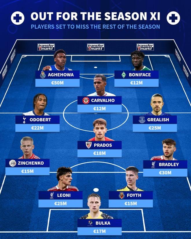 北京时间2月21日,德国转会市场统计了本赛季赛季报销的阵容,其中格拉利什、莱昂尼、津琴科、布拉德利、福伊特等人在列。