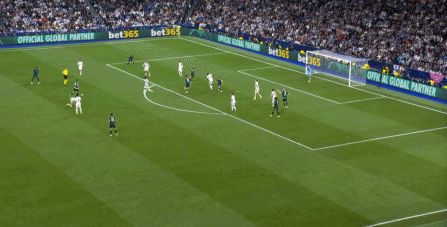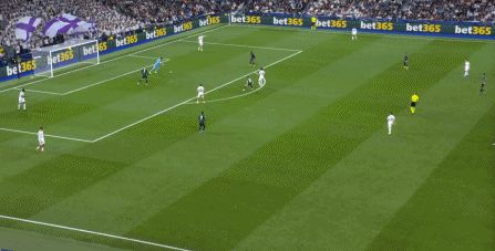 所以在下半场,皇马的表现依然稳健,还是通过人数足够的防守来构筑基础,在此之上进行次数有限,但威胁不小的反击,效果依然不错: