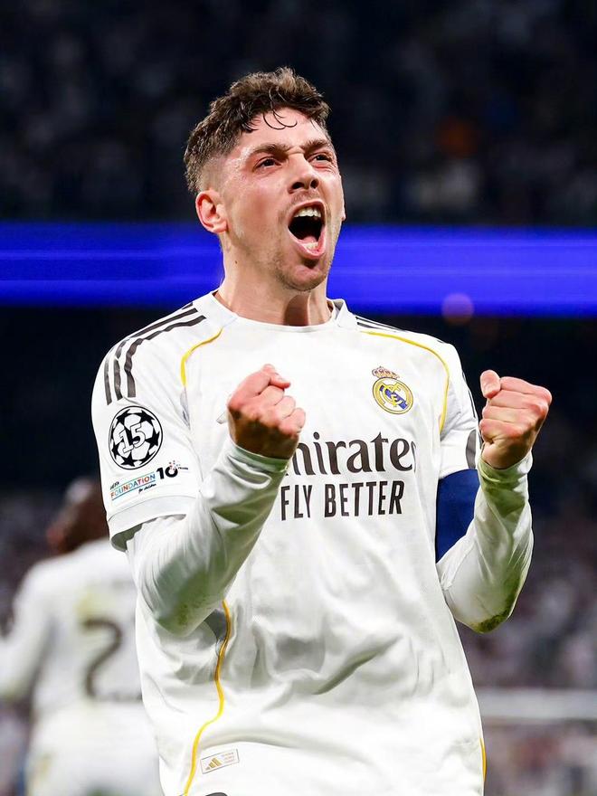第20分钟,皇马取得领先:身价1.2亿欧元,来自乌拉圭的万金油球员:主打前卫,但是可以在后防线任意补缺的8号巴尔韦德开始闪耀——他在右边路伺机而动,得球后甩开防守球员和门将,推射破门,1-0领先!