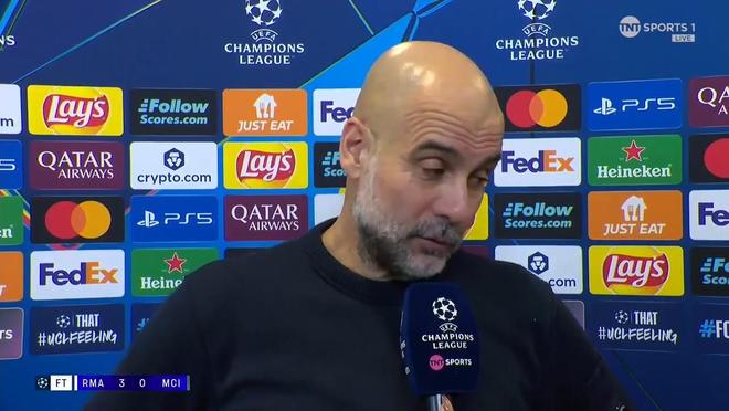 率队在欧冠1/8决赛首回合客场0-3惨败给皇家马德里之后,曼城主教练瓜迪奥拉接受了来自TNT体育的采访。