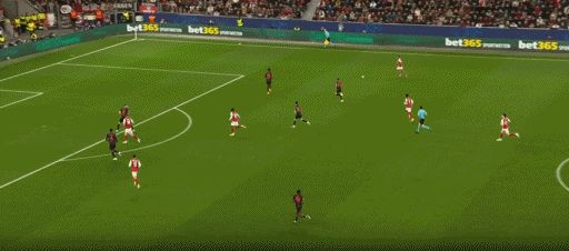第13分钟,加布里埃尔被断球,赖斯回追破坏