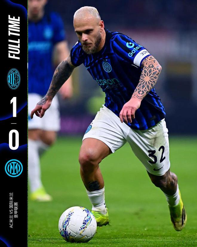 全场比赛结束,最终我们在米兰德比中“客场”0比1不敌AC米兰。