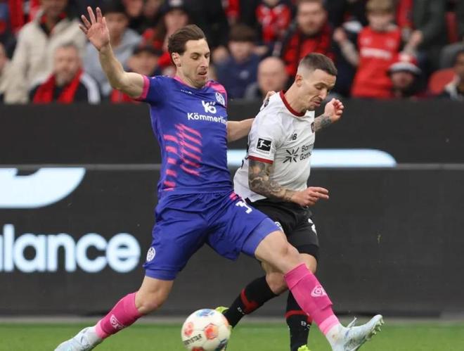 先跟大家捋一捋赛前的处境,勒沃库森本赛季的表现高开低走,前22场联赛打完,取得了12胜3平7负的战绩,这样的成绩虽然和榜首的拜仁差距巨大,争冠基本无望,但冲击欧冠区还是有希望的,毕竟德甲前四的争夺并不算白热化,只要稳住状态,还是有机会拿到欧冠资格的。