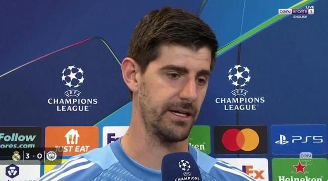 第一球,自开球后到反击皇马仅仅用两次基础的传球机会,库尔图瓦给到巴尔韦德,这球就完事了。曼城的高压逼抢是不是效率太低?对皇马给出这级压力、是不是太自信?
