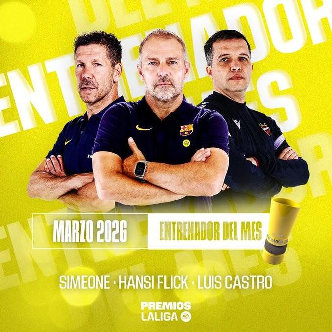 北京时间3月19日凌晨,西甲官方公布了3月最佳主帅的候选名单,其中马竞主帅西蒙尼、巴萨主帅弗里克和莱万特主帅路易斯-卡斯特罗在列。