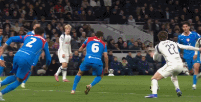 第52分钟,哈维-西蒙斯兜射破网,热刺2-1!总比分4-6!