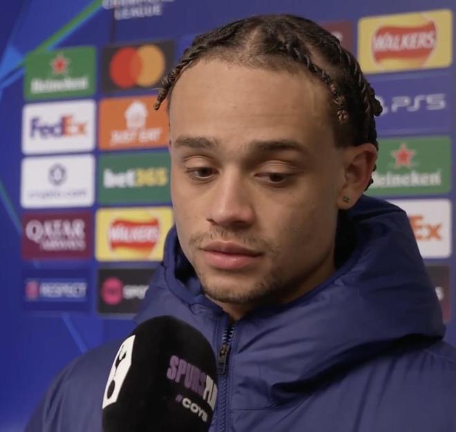 欧冠1/8决赛次回合,热刺主场3-2击败马竞,但仍以总比分5-7遭淘汰,赛后,热刺中场哈维-西蒙斯接受俱乐部官方的采访。