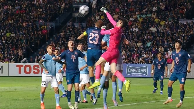 点球大战中,武里南联门将如有神助,连续扑出两粒点球!最终全场比赛结束,武里南联点球战胜墨尔本城!