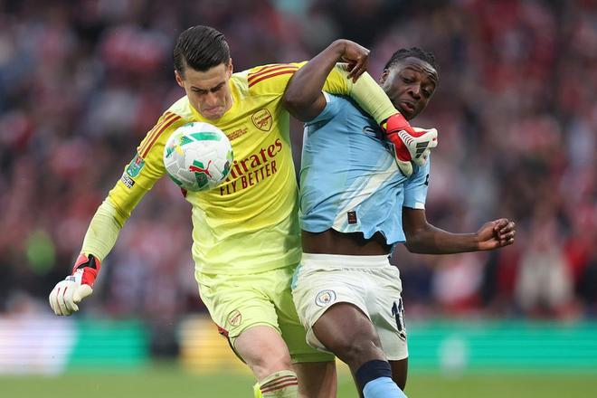 在北京时间3月23日凌晨结束的英格兰联赛杯决赛中,阿森纳0-2不敌曼城,无缘冠军。而本场比赛,31岁的阿森纳“二门”凯帕表现糟糕,出现致命的脱手失误送礼。