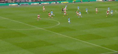 45’塞梅尼奥突破赖斯完成下底传中,哈兰德在本·怀特干扰下头球顶高。