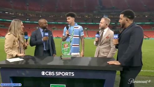 曼城2-0战胜阿森纳夺得本赛季英联杯冠军,梅开二度的奥赖利赛后接受了CBS体育的采访。