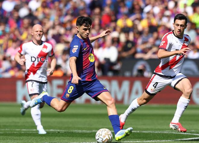 比赛刚刚开打不到1分钟,巴列卡诺就反客为主打穿了巴萨的后防,佩雷斯左路接到队友挑传后,顺势杀入主队禁区随后横敲门前,马丁拍马赶到推射,但被霍安加西亚神扑化解,第13分钟拉菲尼亚抢断后,获得了单刀直面门将的机会,可惜他的打门偏出,9分钟之后,拉菲尼亚又浪费了亚马尔的外脚背妙传,门前射门再次偏出。